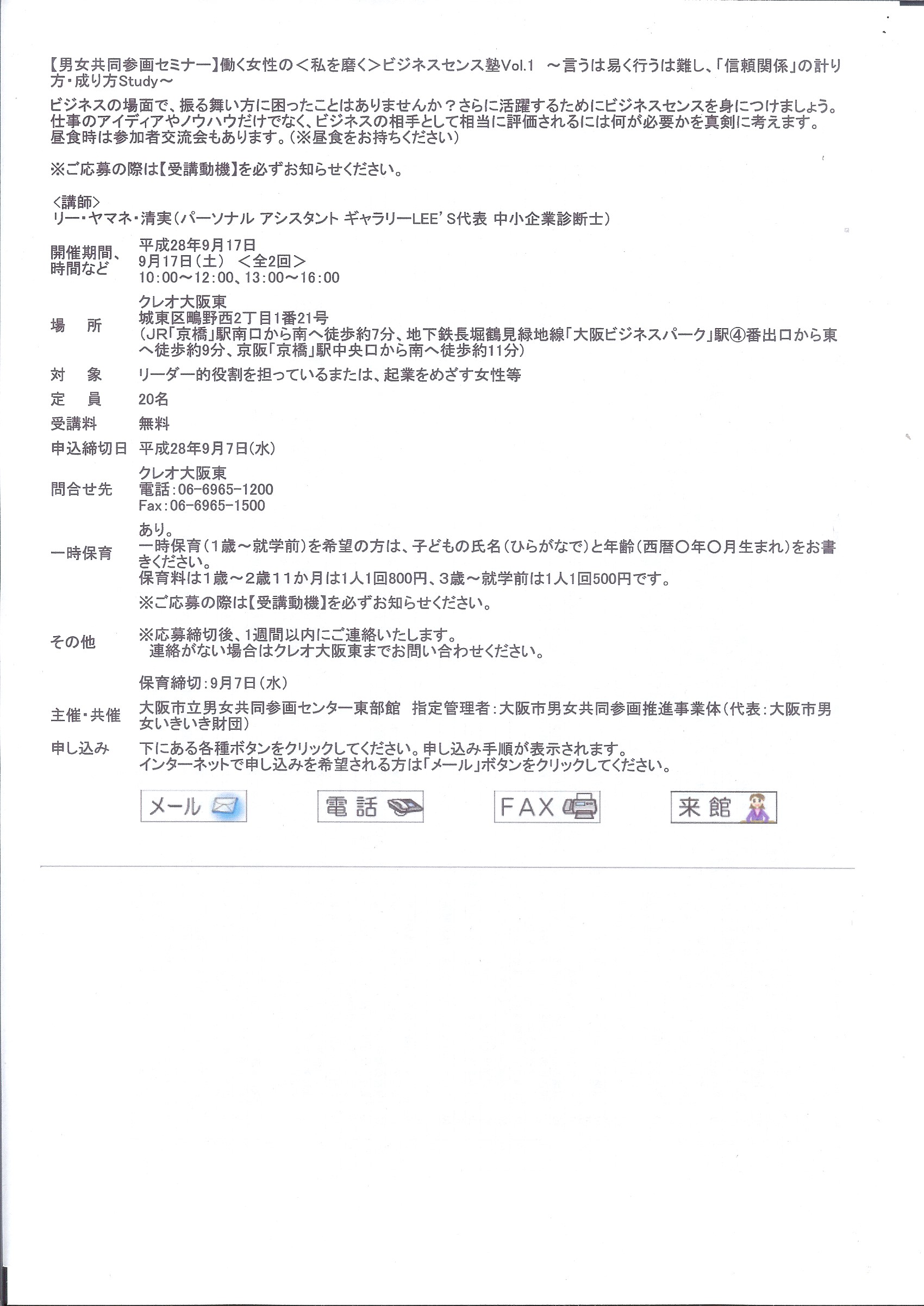 (5/26から6/23) 八尾市の輝く女性活躍推進プロジェクトのSTEP1のリーダー養成講座