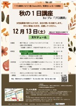 今年度の「プロ講師になろう塾」受講者によるイベントがありました。仕事ではありませんが、様子を見に。お天気に恵まれ、各講座ともなかなか活況でしたが、なにより良い実績になる。今回のチラシなどをしっかり保存するよう、みなさんにアナウンス。クレオさんでの実績は今後に効いてきます。みなさんよい経験になったことでしょう。